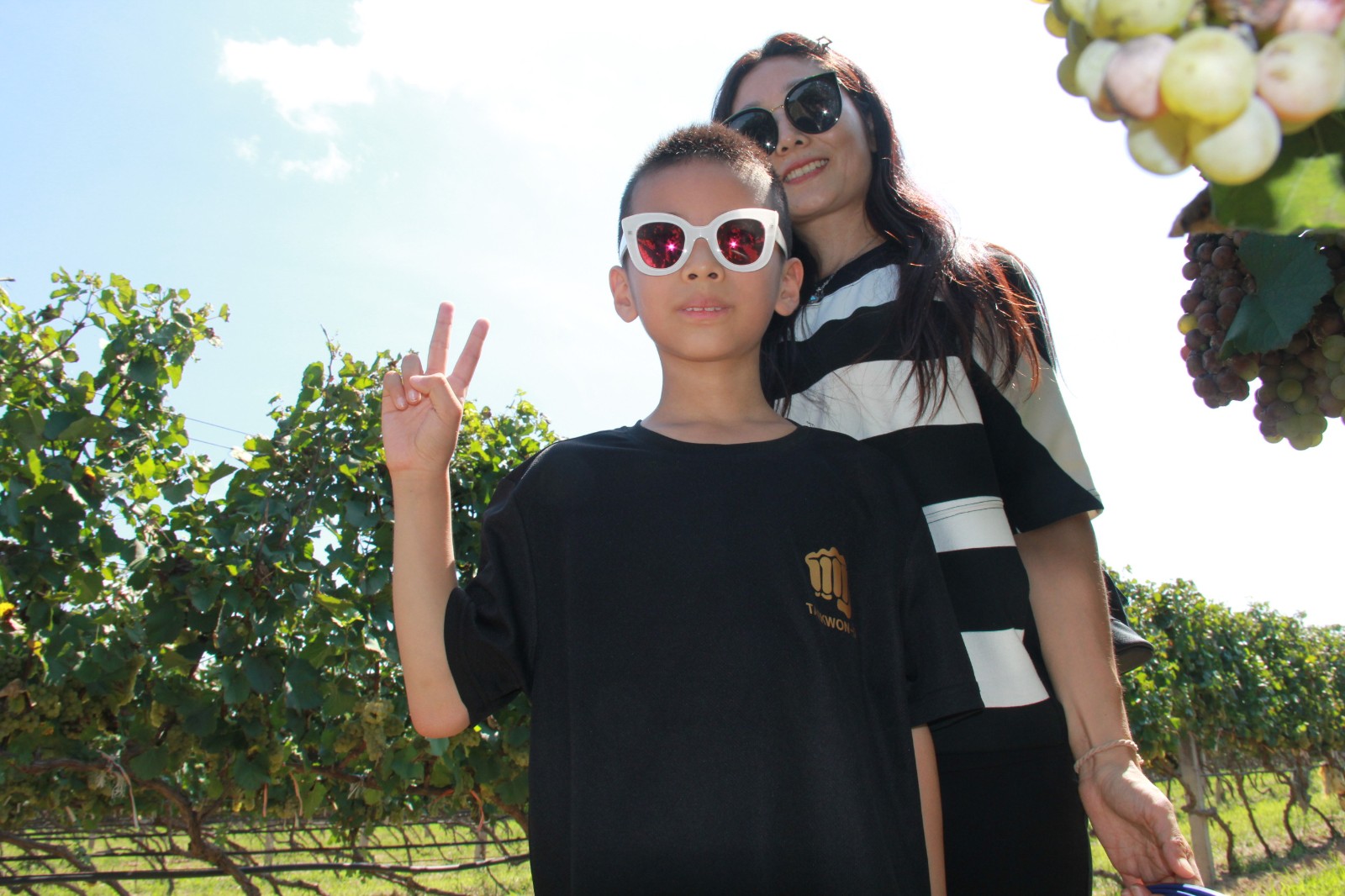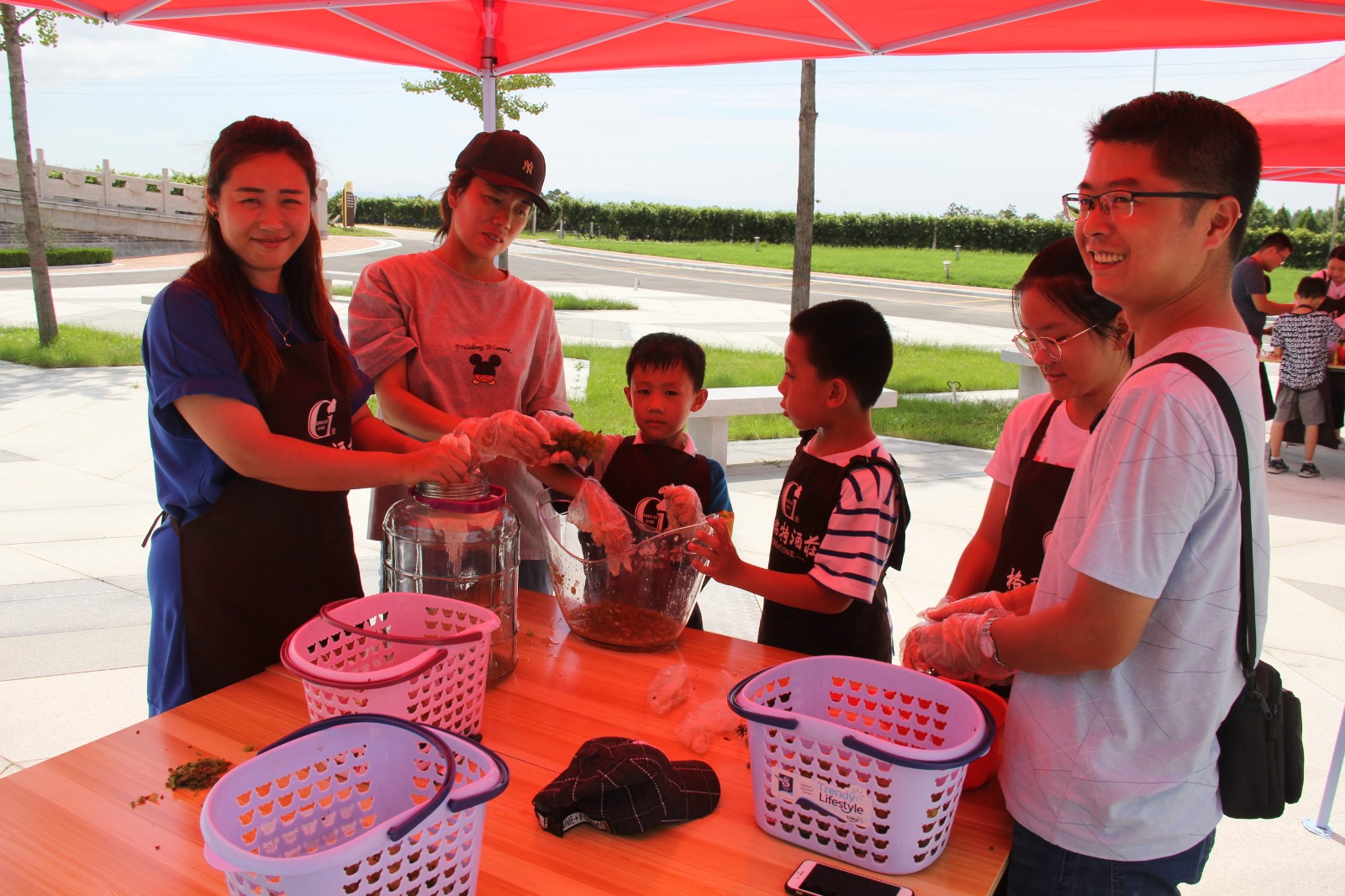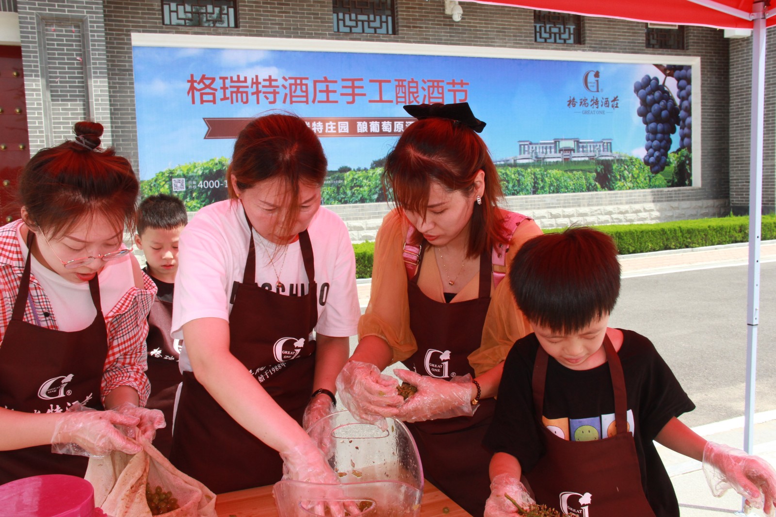 8月23日,,,,,,,,晴朗的初秋,,,,,,,,陪同着清早第一缕向阳的光晕,,,,,,,,纯净辽阔的葡萄园区显得格外明亮、温暖。。。。。白云在天空中肆意幻化,,,,,,,,轻盈、柔软的让人忍不住用指尖去触碰……上午9点,,,,,,,,格瑞特庄园迎来了酿酒节首批体验整体——运城苍轩国际跆拳道的24组家庭。。。。。