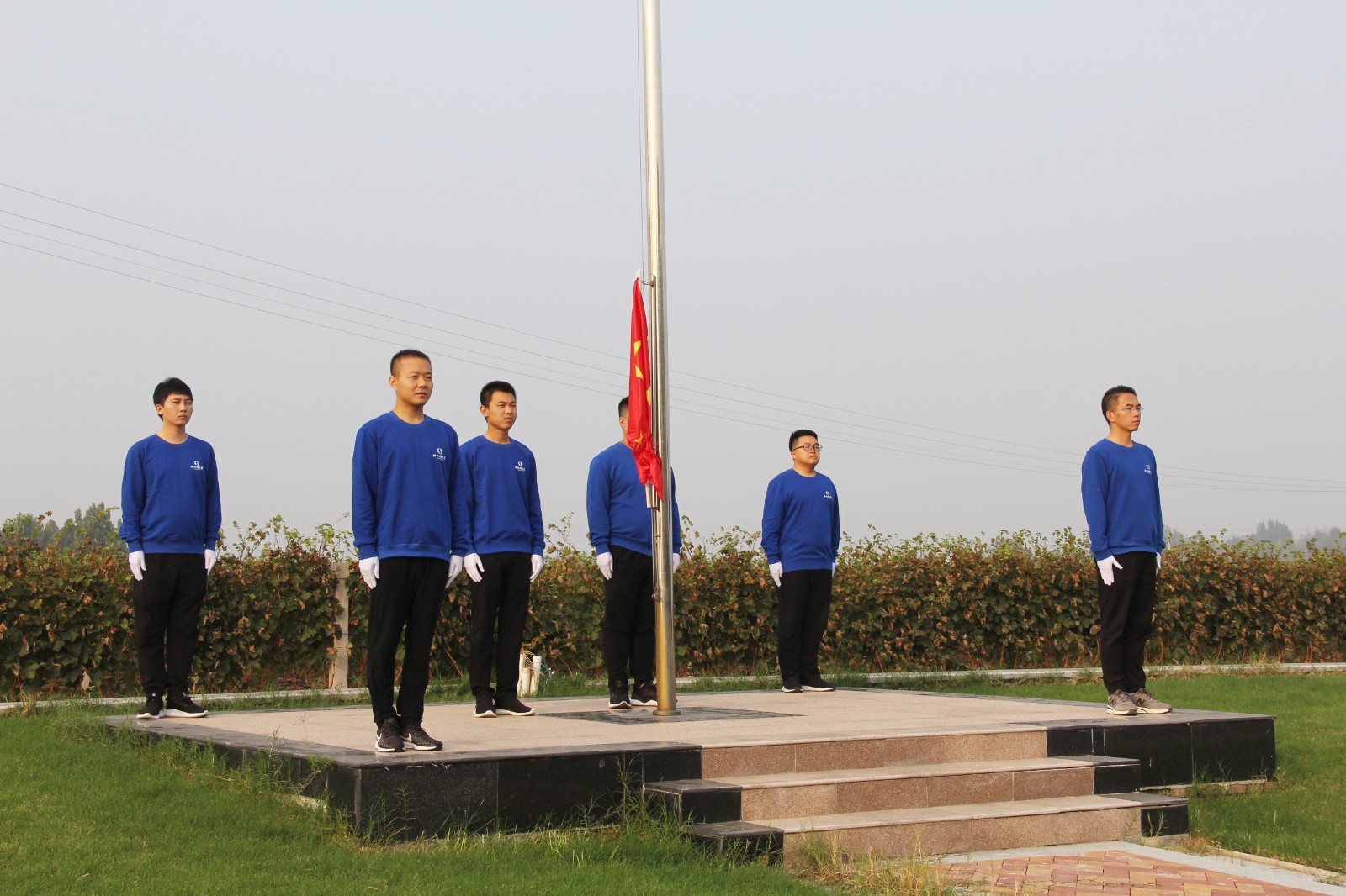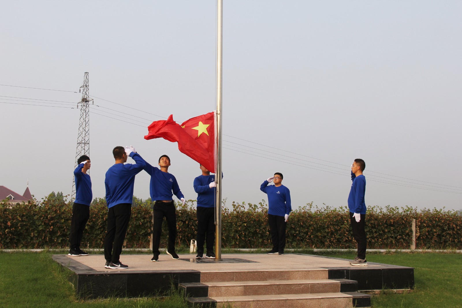 在众人的注目下,,,,,,,,旗头庄重地升起了五星红旗。。。。。。。全体职员心潮汹涌、激情满怀,,,,,,,,配合祝愿伟大的祖国昌盛郁勃,,,,,,,,配合祝愿天下人民幸福安康!